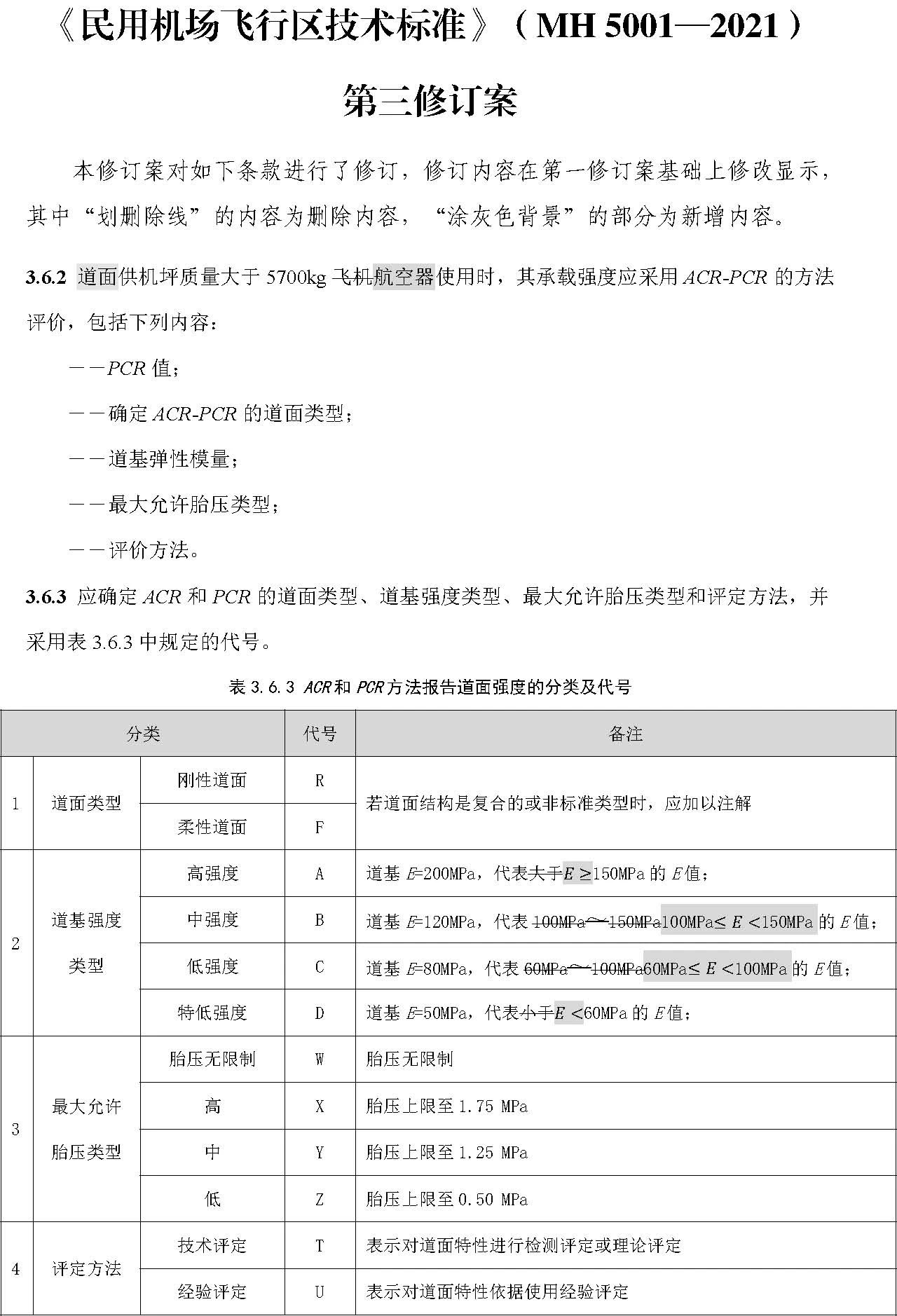 中國民用民航局發(fā)布《民用機場飛行區(qū)技術標準(第三修訂案)》(MH 5001-2021)